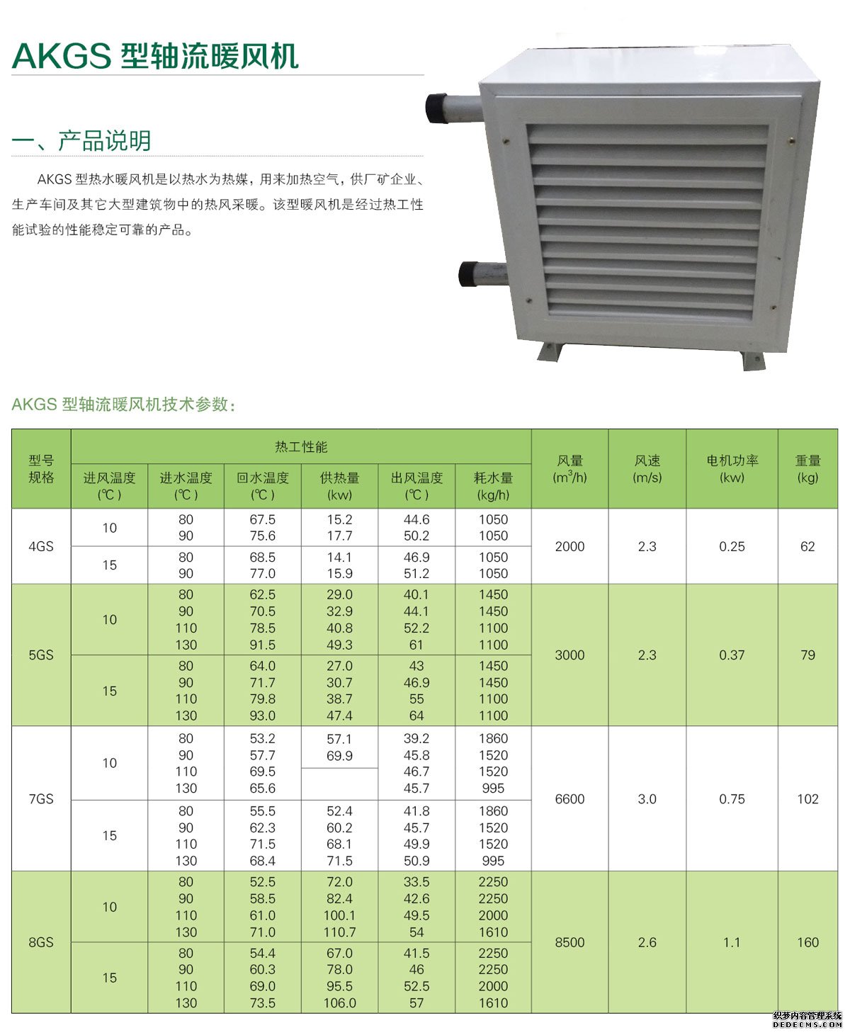 暖風(fēng)機(jī)是由通風(fēng)機(jī)、電動(dòng)機(jī)及散熱器組合而成的聯(lián)合機(jī)組。適用于允許空氣循球的各種類型的車間,當(dāng)空氣中不含灰塵、易燃、易爆性的氣體時(shí),可作為循球空氣采暖 之用,Q型暖風(fēng)機(jī)是